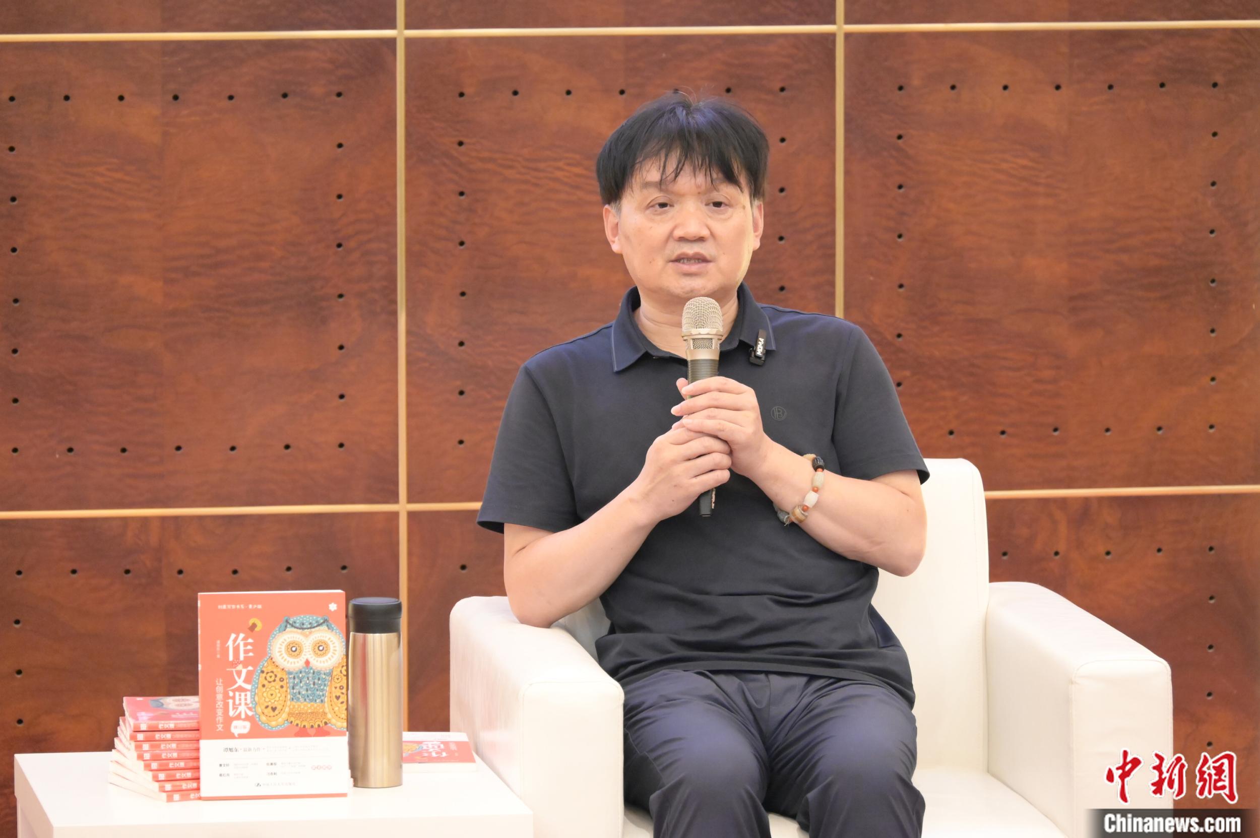 中新網(wǎng)8月22日電 8月19日晚,魯迅文學(xué)獎得主、上海大學(xué)文學(xué)院教授、博士生導(dǎo)師譚旭東攜新作《作文課:讓創(chuàng)意改變作文》,走進(jìn)上海書展,暢談家庭語文教育。譚旭東以自己多年指導(dǎo)中小學(xué)語文教育的經(jīng)歷與大家分享:家庭語文讀寫的培養(yǎng),對孩子的成長和語文的進(jìn)步,都非常關(guān)鍵。