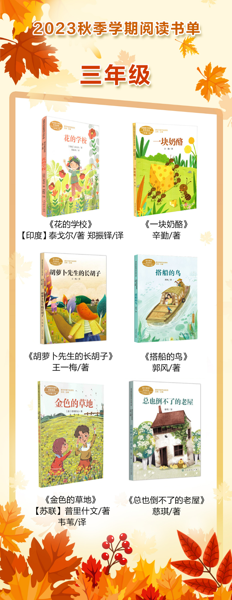 2023秋季學(xué)期三年級閱讀書單