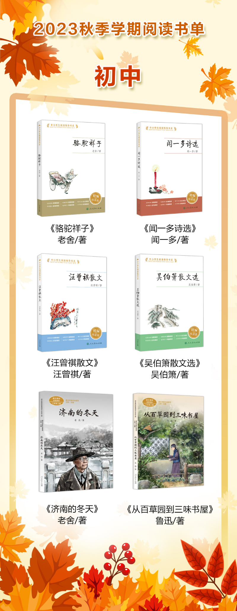 2023秋季學(xué)期六年級閱讀書單