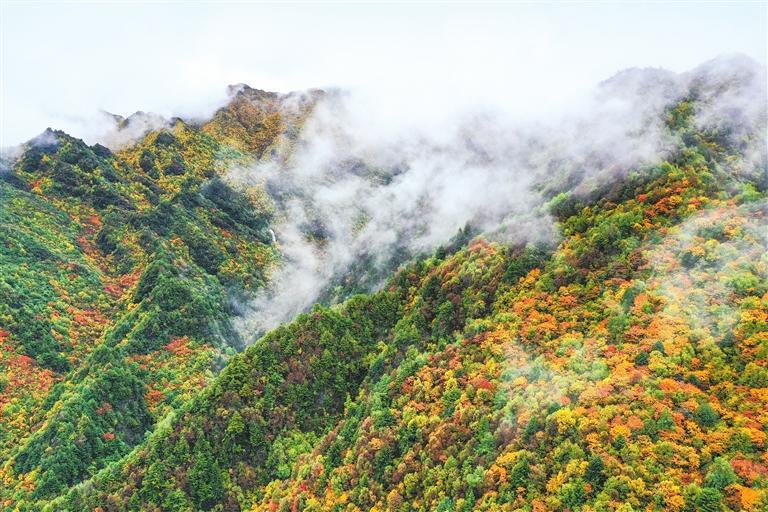地下泉水從巖縫里潺潺流出,山色斑斕、鳥鳴婉轉,水霧彌漫林間,絡繹不絕的游客從谷底沿著曲折縈回的木棧道溯源而上,不由得驚嘆于大自然鬼斧神工的造化。