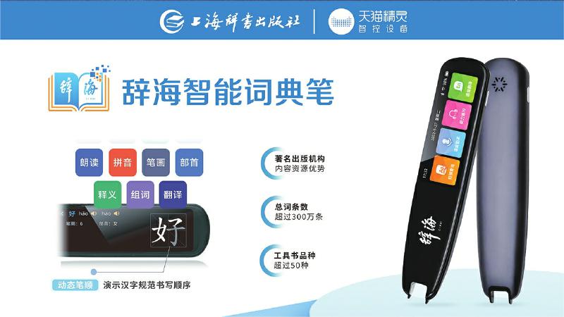 為了更好地適應用戶在紙質(zhì)閱讀過程中的快速查檢需求,辭書社經(jīng)過數(shù)年設計研發(fā),于2022年9月推出辭海智能詞典筆。詞典筆充分依托聚典平臺積累的海量內(nèi)容資源,將1.6億字裝進一支詞典筆,內(nèi)置詞條達到了300余萬條,收錄了《辭?!罚ǖ谄甙妫┖汀洞筠o海》《漢語大詞典》《英漢大詞典》《世紀漢英大詞典》等國家級標志性工具書,整合《現(xiàn)代漢語大詞典》《現(xiàn)代漢語規(guī)范詞典》《中國成語大辭典》《同義詞、反義詞大詞典》等精品工具書,讓用戶每次都能夠查有所得。同時,詞典筆實現(xiàn)掃讀結(jié)果1秒呈現(xiàn),并融合數(shù)字智能技術,集掃描查詢、語音助手、聽力練習、語音翻譯、口語測評、數(shù)碼錄音、生詞本、文本摘抄等八大功能于一體,實現(xiàn)一筆多用。