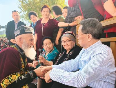 王蒙常說一句話:“新疆人民對我恩重如山。”《在伊犁》《這邊風景》中對大自然的描寫如詩如畫,如歌如訴。他是一位邊疆大地的抒情詩人,他說過:“我們有一個夢,它的名字叫做人民。”站在遼闊的伊犁河岸畔,站在巴彥岱的田野上,站在這個夢中,今夕何夕,任重道遠……