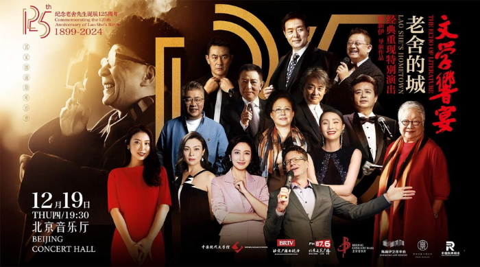 12月19日,一場獨特的文學“響”宴在北京音樂廳舉行。這是一期以老舍為文化主題的詩文雅集,一個關(guān)于歷史文化名城北京的年度盛典。在總導演陳薪伊的引領(lǐng)下,濮存昕、斯琴高娃、史可、陶虹、春妮、季冠霖、李立宏、任志宏、徐濤、大山、李洪濤、小柯、張樹榮等眾多著名藝術(shù)家,共同誦讀老舍先生的經(jīng)典名作,向這位偉大的人民藝術(shù)家致敬。