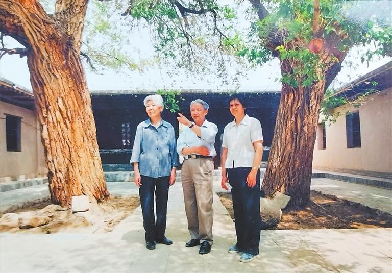 孫儒僴、李其瓊夫婦和女兒孫毅華在維修后的中寺。資料圖