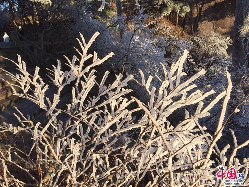 2019年最后一天黃山風(fēng)景區(qū),出現(xiàn)壯觀的日出、霧凇、云海景觀,到處銀妝素裹,冰雕玉砌,“一夜寒風(fēng)起,萬(wàn)樹(shù)銀花開(kāi)”,置身其間,仿佛進(jìn)入撲朔迷離的童話世界,給來(lái)山的游客帶來(lái)意外的驚喜。