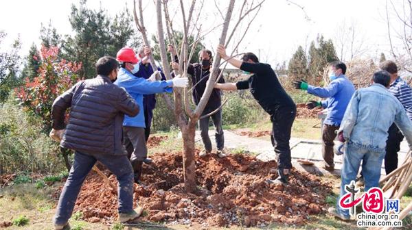 合力扶苗、揮鍬填土、踩實(shí)壓緊、提桶澆水……3月10日,在湖南省武岡市荷塘村義務(wù)植樹基地,黨員群眾分工協(xié)作、相互配合,每個(gè)環(huán)節(jié)都一絲不茍。經(jīng)過(guò)一上午的忙碌, 一棵棵櫻花樹迎風(fēng)挺立,把山頭裝點(diǎn)得綠意盎然。今年,武岡繼續(xù)啟動(dòng)55個(gè)美麗鄉(xiāng)村綠化美化建設(shè),繼續(xù)改善城鄉(xiāng)環(huán)境,提高人民群眾的獲得感和幸福感,為爭(zhēng)創(chuàng)省級(jí)森林城市“添磚加瓦”。