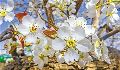進(jìn)入古梨園,看見(jiàn)古梨樹(shù)雖然沒(méi)有綠葉的襯托,但粗壯遒勁的枝干上開(kāi)出簇簇潔白的梨花,樹(shù)皮的皴皺變得模糊,整個(gè)古樹(shù)也變得清新雅麗、溫婉可人起來(lái),再看著樹(shù)下白墻青瓦的村屋,會(huì)讓人一下子忘掉冬天,這就是人們?yōu)槭裁磹?ài)在春天逛古梨園的原因吧。