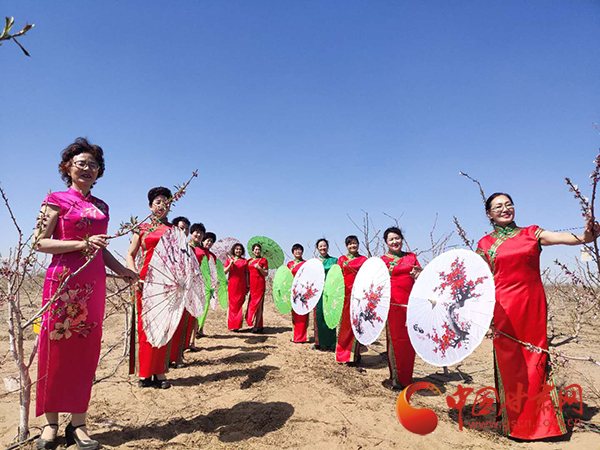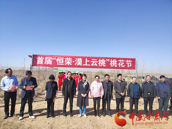 中國甘肅網(wǎng)4月25日訊(本網(wǎng)記者 張振國 文/圖)人間四月芳菲盡,大漠桃花始盛開。4月25日,騰格里沙漠邊緣、涼州大漠桃花即將開放之際,由甘肅恒榮綠洲治沙科技有限公司舉辦的首屆“恒榮·漠上云桃”桃花節(jié)在涼州區(qū)紅水河西該公司生態(tài)經(jīng)濟(jì)林產(chǎn)業(yè)化經(jīng)營試驗基地“恒榮桃園”開幕。