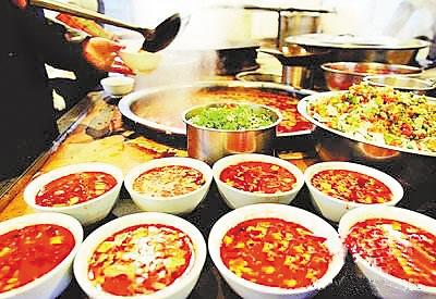 在晾面的時候,主婦開始炒菜,做湯頭。做菜前,先要熟些新鮮的油潑辣子,在辣面中調(diào)入少許精鹽與調(diào)和粉,將熱好的胡麻油“嗞拉”一聲傾入辣子面中,香辣之味頓時充滿一室。然后開始燴菜做湯頭。只見主婦有條不紊地將切好的菜丁逐一擱進油鍋里,反復(fù)翻炒,適時放入大香、桂皮、草果、生姜、花椒等制成的混合調(diào)料與精鹽,等香味炒出來了,便漩入提前燒好的開水,火關(guān)小,讓其慢熟。