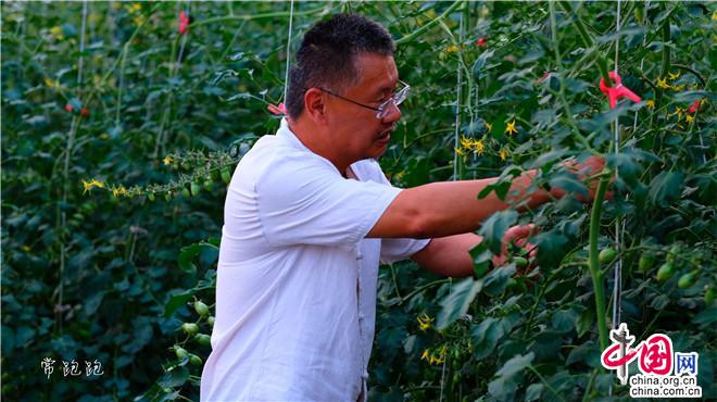 ?。▓D:番茄小鎮(zhèn)負責人毛建偉在摘番茄