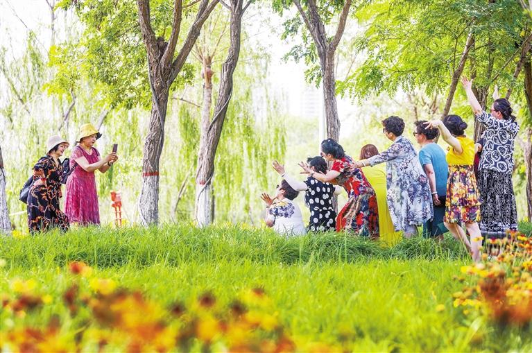 公園內馬鞭草種植量達20多萬株,還有金雞菊、天人菊、松果菊、金娃娃萱草、月季等宿根花卉和醉蝶、波斯菊、百日草等,花卉種植面積7萬多平方米,占公園總面積的60%以上。絢麗多彩的大色塊的花景組合配以公園獨特的運動主題,呈現(xiàn)出動靜有致的濱河“花海”,深受廣大市民的喜愛,成為黃河風情線新晉網(wǎng)紅“打卡”點。