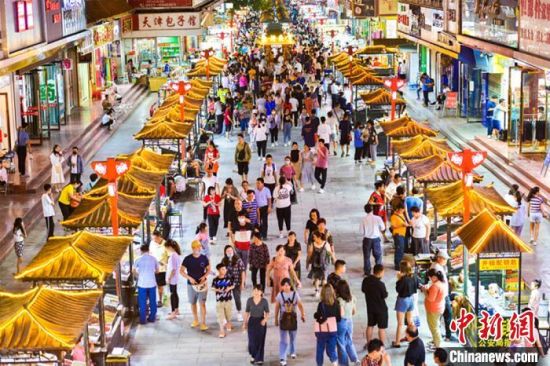 7月29日,游客在敦煌旅游工藝品一條街上漫步,體驗濃郁的民俗風(fēng)情和敦煌文化。 王斌銀 攝