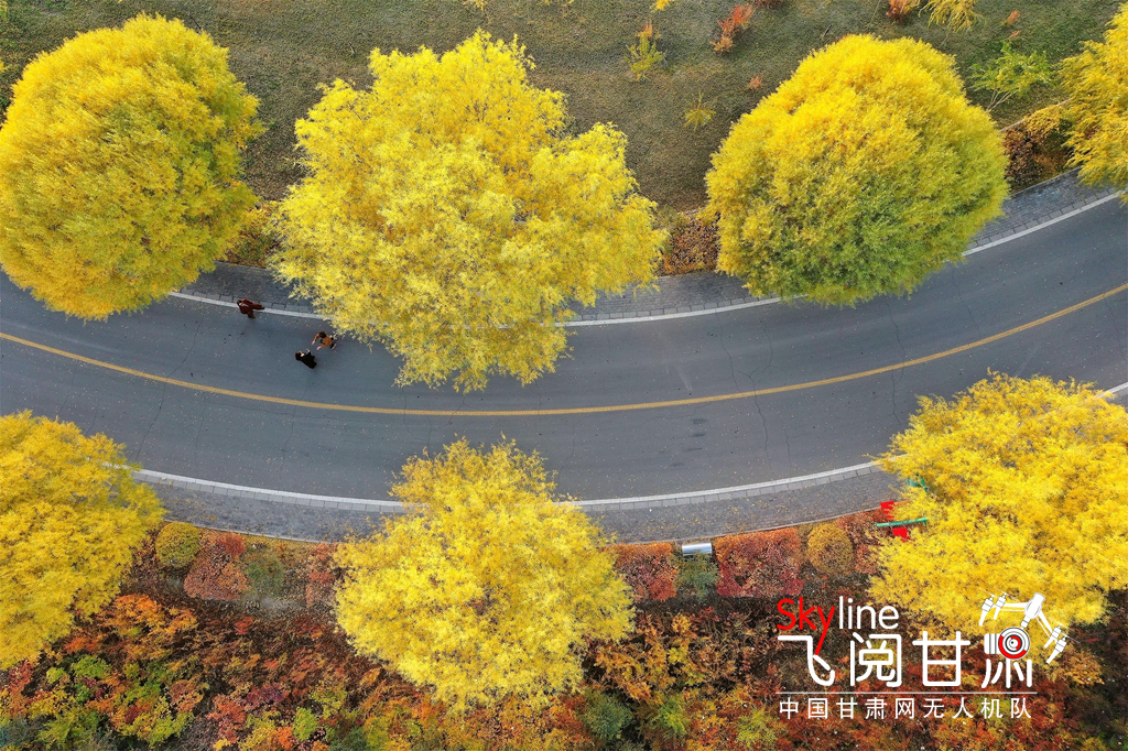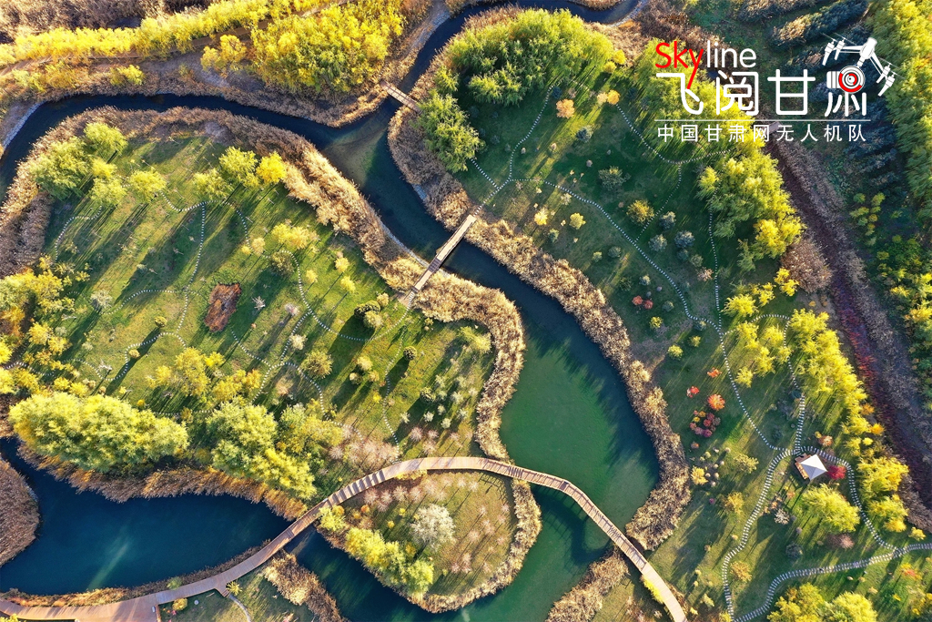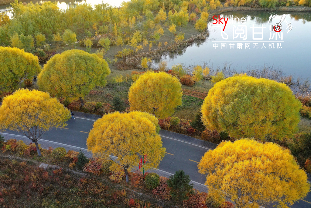 10月22日,甘肅省張掖國家濕地公園內流光溢彩,秋意濃濃,金黃色的饅頭柳引人注目。