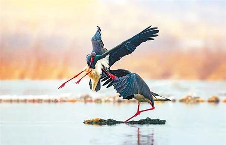 黑鸛不僅會捕魚,還是珍稀的保護(hù)動物。黑鸛有兩條大長腿,常在濕地邊緣的淺水區(qū)域活動覓食,因此是涉禽而不是游禽,有時它也到水邊的陸地上活動。黑鸛身披黑白二色,加上大紅色的眼圈、長嘴,色彩搭配既強(qiáng)烈又前衛(wèi)。它是我國體型最大的食魚水鳥之一,飛行遷徙能力很強(qiáng),在歐、亞、非大陸都有分布,但近年來國內(nèi)的種群數(shù)量下降明顯,已成為國家一級保護(hù)動物,珍稀程度可以說不亞于大熊貓。