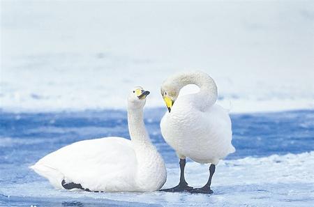 我國有三種天鵝,在甘肅都有分布,其中更常見的是大天鵝。大天鵝不在甘肅繁殖,而要飛往遙遠(yuǎn)的西伯利亞等地,但會途經(jīng)甘肅的諸多濕地,并于此歇腳補(bǔ)充能量。