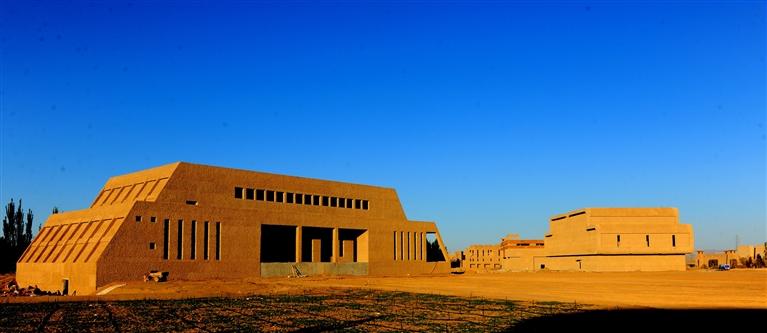 走在磨盤大道上,逐一參訪已經(jīng)建成的敦煌國際美術館、古化石館、佛教藝術館、中華根藝館、古錢幣館、絲綢之路館、彩陶館、玉文化館、栗亭硯館、青銅器館、隕石館、非遺館12個單體博物館、胡楊山以及正在建設中的沙漠寶藏館。