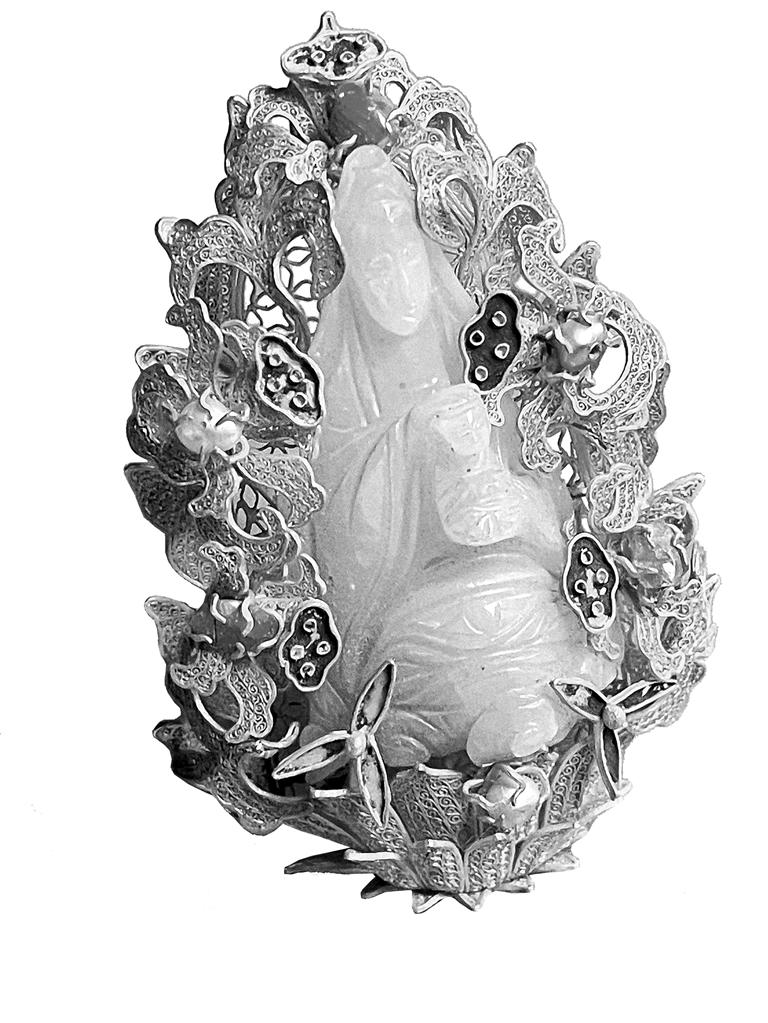 1986年,蘭州市博物館對白衣寺塔進行整體維護,從塔剎天宮處發(fā)現(xiàn)明代珍貴文物46件,其中有《大方廣佛華嚴經(jīng)》、鎏金釋迦牟尼銅造像、明代印花絲巾等文物,尤其是金蓮玉雕抱子觀音簪和金蓮玉雕魚籃觀音簪,造型精致,做工精美,表現(xiàn)了很高的明代金累絲手工制造技術(shù)水平,簪柄有銘文21字,“崇禎五年捌月初拾日肅王妃熊氏施伴讀姚進兼裝”,被定級為國家一級文物。