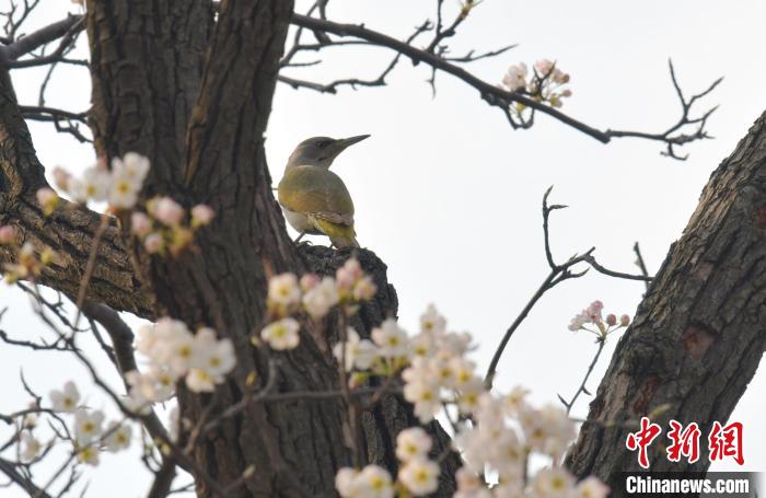 鳥兒在梨樹枝頭停留。劉峰 攝