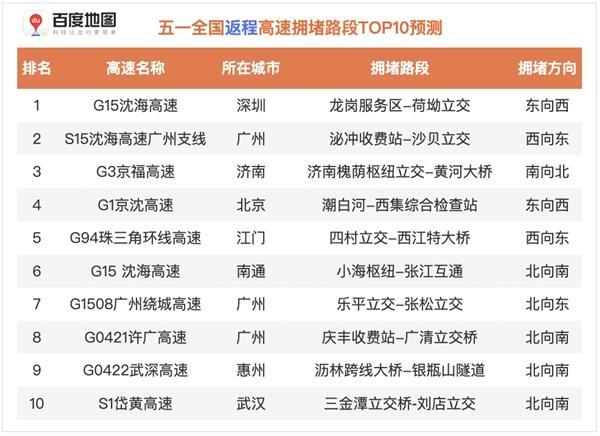 ?。?021年五一假期返程高速擁堵路段TOP10預(yù)測(cè))
