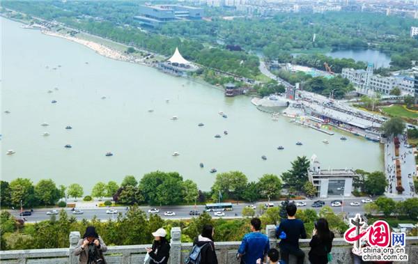在大洞山、督公湖景區(qū),小丑嘉年華、氣球玩偶秀、魔法實驗室等成為假日溜娃的好去處,大小朋友在碧水藍(lán)天下與白鴿零距離互動,呈現(xiàn)了人與自然的和諧相處,非物質(zhì)文化遺產(chǎn)項目表演“一葦渡江”中的漢服小哥衣袂飄飄地立于竹竿上,成為督公湖上一道靚麗的風(fēng)景線。