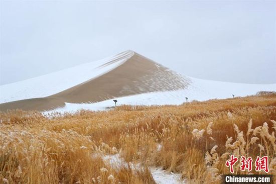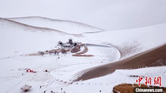 2月17日,甘肅敦煌迎來降雪天氣,大漠山川被皚皚白雪覆蓋,像一幅幅清秀淡雅的水墨山水畫。敦煌著名風(fēng)景區(qū)——鳴沙山月牙泉景區(qū)吸引游客前來觀賞難得一見的大漠雪景。這次降雪的特點是降雪量大,但氣溫并不是很低,游人盡情體驗“沙雪交融”的絲路盛景。(王斌銀 張曉亮)