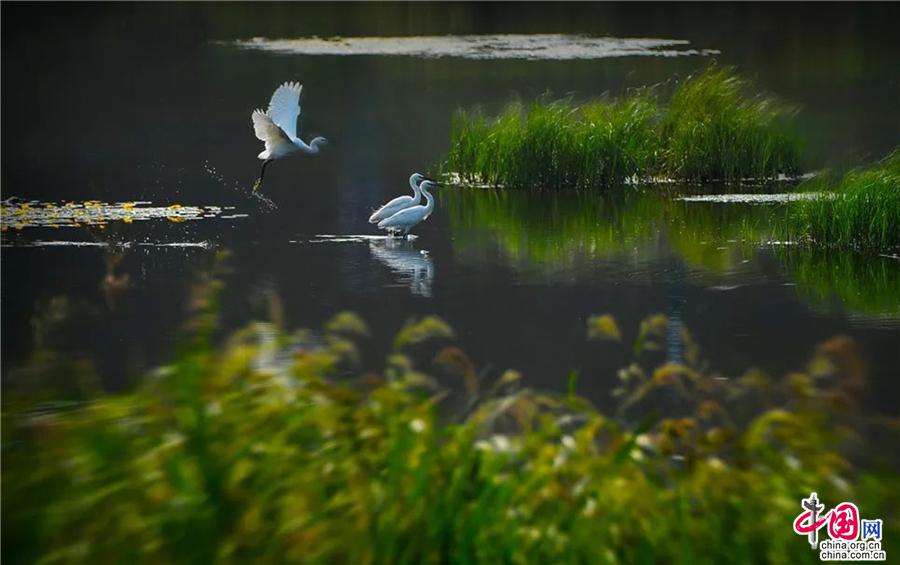 沙湖每年的四月也是最值得期待的。一年一度的國際觀鳥節(jié)總能吸引大批的游客和攝影愛好者,不遠萬里奔赴一場與濕地候鳥的春之約。成千上萬只候鳥齊飛的場景,讓很多游客在感慨這片土地的神奇魅力之時,也常常熱淚盈眶,人與自然和諧共生的畫面,無疑是對這片土地最好的贊美。在這片廣闊的地域上,金沙、碧水、飛鳥、游魚、遠山、綠葦相互交織,形成了沙湖春季獨特的自然景觀。