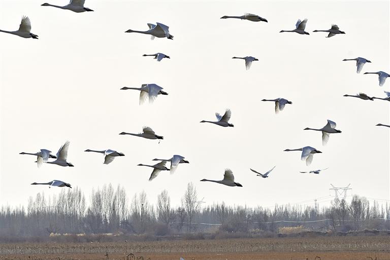 中國甘肅網(wǎng)3月24日訊 據(jù)蘭州晚報報道(通訊員 鄭耀德 記者 雒煥素 攝)3月22日,在張掖黑河濕地國家級自然保護區(qū)臨澤縣鮑家湖濕地內(nèi),大群的野生大天鵝、赤麻鴨、綠頭鴨、灰雁等北遷候鳥嬉戲覓食,黑河濕地迎來了春季候鳥遷徙高峰期。