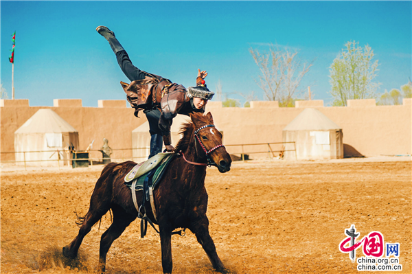 除此之外,游客在景區(qū)擂臺處不僅能夠觀看驚險刺激的市井雜耍,還有每天兩場的樂隊表演不容錯過。擂臺不遠(yuǎn)處就是今年4月1日全新推出的實景馬戰(zhàn)《烽火西夏》演出場地,看完雜耍的游客可直接到馬場觀看接下來的演出。