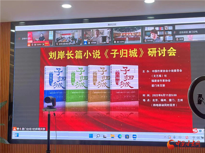 中國(guó)甘肅網(wǎng)6月12日訊 (本網(wǎng)記者 張?zhí)m琴)作為敦煌文藝出版社目前出版的“重量級(jí)”圖書,劉岸長(zhǎng)篇小說《子歸城》受到國(guó)內(nèi)各領(lǐng)域關(guān)注和好評(píng)。6月11上午,劉岸長(zhǎng)篇小說《子歸城》研討會(huì)在北京、福州、蘭州、廈門四地,以線上線下聯(lián)動(dòng)的方式舉行。