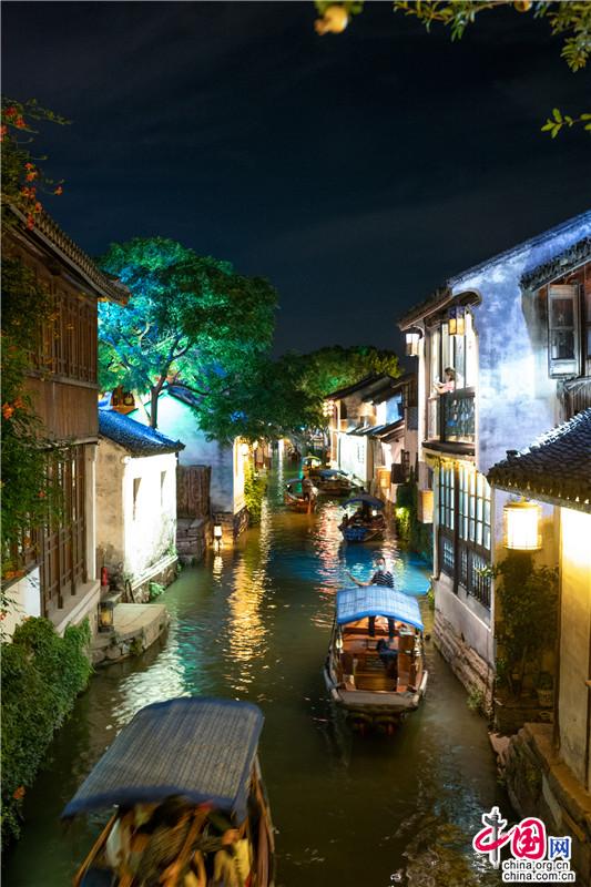 宋朝時(shí)候,宵禁解除,每至深夜,燈火通明。如今周莊的夜色,亦是在光影中沉醉,水影搖曳間,畫船枕眠。這里,可以陽春白雪,不食煙火;也可以徹夜不歇,最懂人間。這場周莊的溫柔夢,將一直編織下去……澤國溫柔的清風(fēng),夜間可愛的彎月,若能與你共賞,那便再無遺憾。歌里唱,不懼怕,天涯路長,甘為你,披滿身風(fēng)霜,請君,入夢。(尤紫璇 周宣)