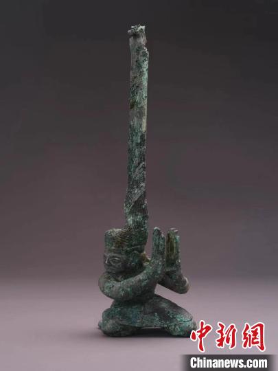 第一件扭頭跪坐人像出土時臉部布滿了銅銹,加之盤發(fā)沖天的造型,考古工作者并未意識到這是一件青銅人像。但這一疑慮很快隨著第二件扭頭跪坐人像的出土而被打破。