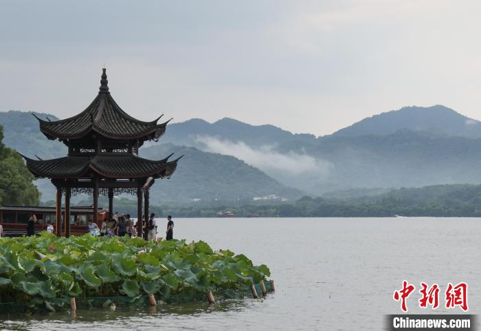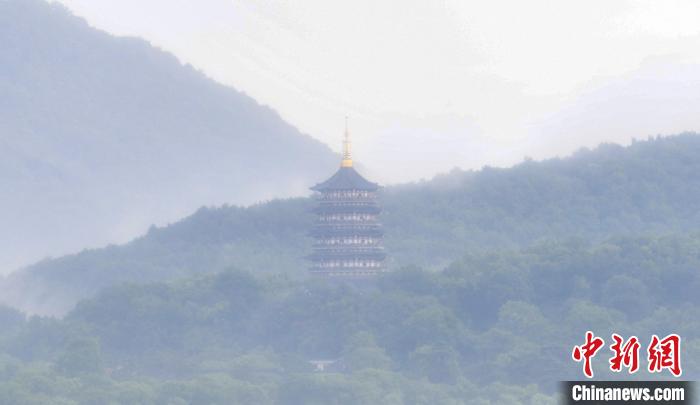 持續(xù)高溫天氣后,杭州終于迎來(lái)降雨,久違的大雨讓西湖景點(diǎn)和群山在雨水和云霧中呈現(xiàn),朦朧的景致如一幅山水畫一樣,引游人觀賞。