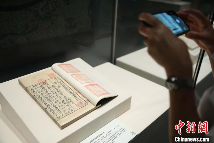 記者3日在展覽現(xiàn)場(chǎng)看到,重點(diǎn)展出的珍貴古籍有宋紹定六年(1233)臨江軍學(xué)刻本《朱文公校昌黎先生集四十卷》,經(jīng)文徵明、王世懋、季振宜等明清藏書名家遞藏,世所罕見(jiàn),具有極高的文獻(xiàn)和版本價(jià)值;元大德九年(1305)太平路儒學(xué)刻本《漢書一百卷》版本珍貴,但之前地腳處書葉、襯紙紙張表面生有大量霉斑,并存在泥漬、糟朽、殘損等,修復(fù)后方能一睹真容,充分體現(xiàn)了修復(fù)人員化腐朽為神奇的力量;明成化九年(1473)內(nèi)府刻本《資治通鑒綱目五十九卷》,由朱熹手定其綱、朱熹門人趙師淵撰寫其目,因該本原瓷青絹質(zhì)書衣破損面積大,故采用了補(bǔ)絹仿制與染色、做舊等修復(fù)方法,呈現(xiàn)出補(bǔ)絹與原書衣高度匹配的自然老化效果,非常適合觀眾現(xiàn)場(chǎng)感受“整舊如舊”的古籍修復(fù)原則。