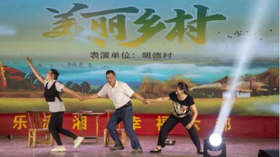 明德村打造“最美瀟湘文化陣地”美名遠揚,為明德村“文化服務(wù)走出去”打下了堅實基礎(chǔ)。村里的文藝團隊除了義務(wù)服務(wù)外,平時還經(jīng)常應(yīng)邀到其他外村表演,獲取點額外收入。村支兩委乘勢而上,把文化優(yōu)勢變成產(chǎn)業(yè)優(yōu)勢,把文化產(chǎn)業(yè)變?yōu)榇迕裰赂坏?ldquo;法寶”與鄉(xiāng)村振興的“加速器”。