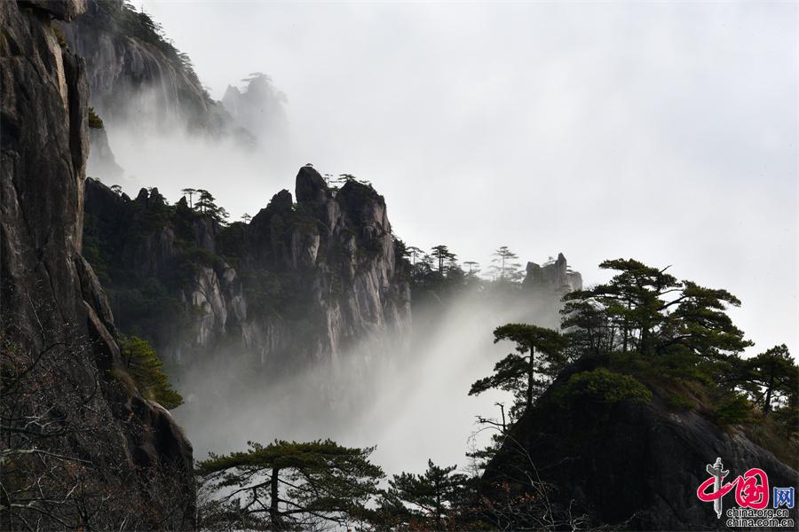 黃山美景讓游客大飽眼福,紛紛拍照留念。