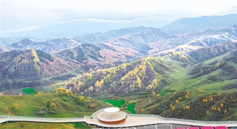 今年以來(lái),臨夏縣圍繞旅游大通道項(xiàng)目,在景區(qū)建設(shè)完善步道、觀(guān)景臺(tái)等基礎(chǔ)設(shè)施,帶動(dòng)旅游產(chǎn)業(yè)發(fā)展。圖為景色如畫(huà)的耳子屲梁。 記者 史有東 攝
