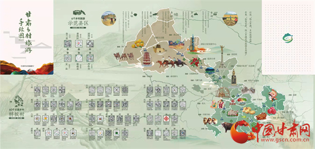 據(jù)了解,為了深入推進(jìn)文旅市場復(fù)蘇百日攻堅(jiān)行動(dòng),加強(qiáng)產(chǎn)品開發(fā)供給,促進(jìn)鄉(xiāng)村旅游升溫,省文旅廳于12月13日發(fā)布了2022版甘肅鄉(xiāng)村旅游手繪圖。手繪圖以“相約隴原促振興·富了口袋富腦袋”為主題,對2022年創(chuàng)建的6個(gè)鄉(xiāng)村旅游示范縣,60個(gè)文旅振興鄉(xiāng)村樣板村開發(fā)設(shè)計(jì)了電子“二維碼”,設(shè)置了甘肅省鄉(xiāng)村旅游60條四季精品線路,幫助游客品味鄉(xiāng)村風(fēng)情、感知鄉(xiāng)村文化、體驗(yàn)鄉(xiāng)村魅力,進(jìn)一步展示甘肅鄉(xiāng)村旅游新形象、擴(kuò)大鄉(xiāng)村旅游影響力,做亮“隴上鄉(xiāng)遇”鄉(xiāng)村旅游品牌,打造“隴上鄉(xiāng)遇”鄉(xiāng)村旅游全景圖。