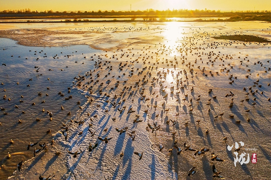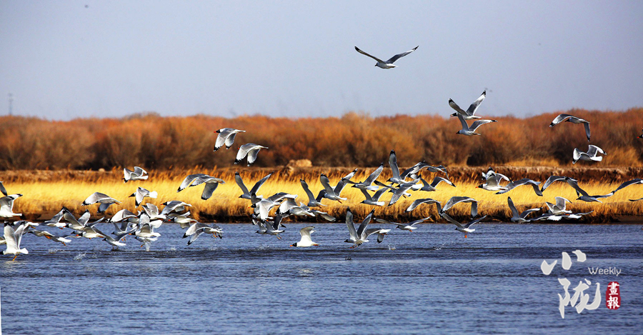 這里是甘肅民勤石羊河國(guó)家濕地公園,一處鑲嵌在騰格里和巴丹吉林兩大沙漠的“生態(tài)廊道”,位于民勤縣城以南30公里處,南起紅水河橋,北至紅崖山水庫北緣,是中國(guó)西北干旱區(qū)富有代表性的河流與沙漠水庫復(fù)合型濕地公園、荒漠濕地動(dòng)植物的樂園和基因庫。