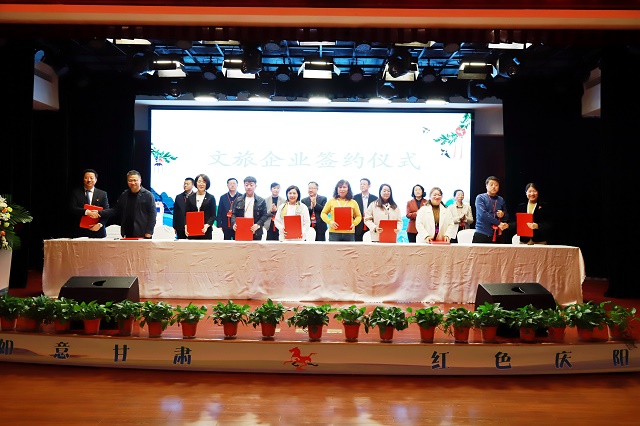 專(zhuān)題推介會(huì)上,由慶陽(yáng)市文體廣電和旅游局黨組書(shū)記、局長(zhǎng)郭麗君全面推介了慶陽(yáng)文化旅游資源,慶陽(yáng)旅游百事通國(guó)際旅行社總經(jīng)理毛永吉重點(diǎn)推介了慶陽(yáng)旅游精品線路;重慶山水國(guó)旅、陜西中國(guó)旅行社等川、渝、陜、青、寧等省(區(qū)、市)旅行社與慶陽(yáng)公共交通集團(tuán)旅行社、慶陽(yáng)文化旅游投資集團(tuán)北豳風(fēng)旅行社等20家旅行社,相互簽訂了“引客入甘肅游慶陽(yáng)”客源輸送及慶陽(yáng)旅游產(chǎn)品聯(lián)合開(kāi)發(fā)合作協(xié)議。推介環(huán)節(jié)還組織進(jìn)行了嗩吶演奏《沸騰的黃土地》、慶陽(yáng)民歌《送吉祥》、南梁說(shuō)唱傳統(tǒng)劇目《紅鳳先下山》以及民歌聯(lián)唱等極富隴東特色的文藝表演。推介會(huì)前,與會(huì)嘉賓還一起觀看了慶陽(yáng)文旅形象及招商項(xiàng)目圖片展、非遺文創(chuàng)產(chǎn)品展。甘肅省文旅廳有關(guān)處室和省內(nèi)外旅行商、文旅企業(yè)、媒體記者代表,慶城縣政府、慶陽(yáng)市重點(diǎn)景區(qū)、文旅企業(yè)等相關(guān)負(fù)責(zé)人共150余人參加。