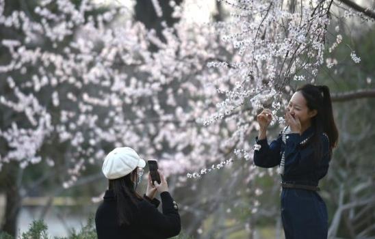 3月8日,游客在北京玉淵潭公園賞花。