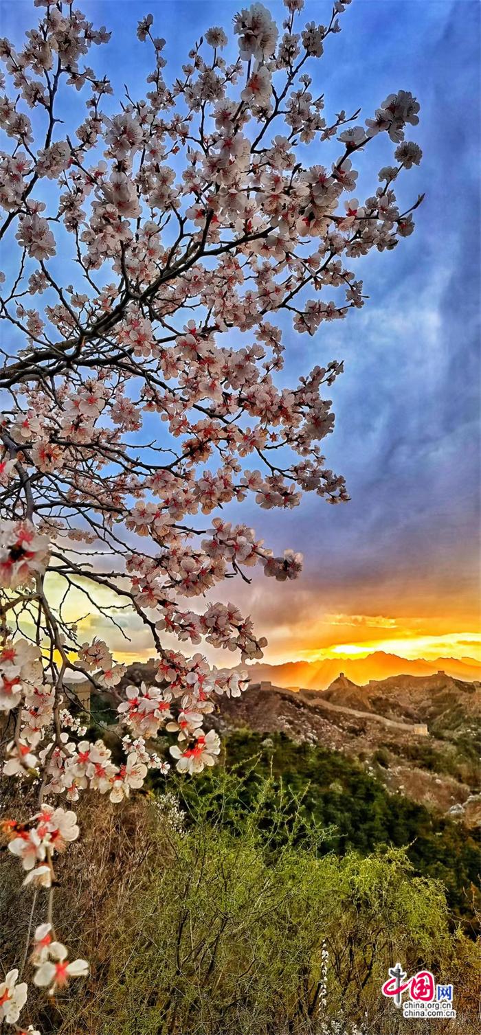 資料圖:當(dāng)長城遇上杏花。 張愛東 攝 圖片和作品內(nèi)容無關(guān)