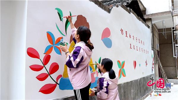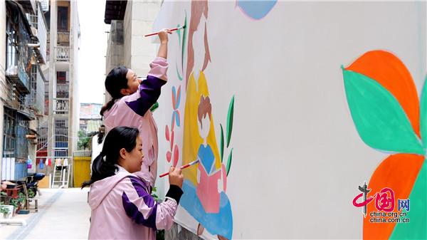 現(xiàn)場(chǎng),大家手持畫筆和顏料板,相互分工協(xié)作,以墻為紙,認(rèn)真細(xì)致的設(shè)計(jì)墻繪內(nèi)容,筆起筆落間,一幅幅栩栩如生、色彩絢麗的城市文明新畫卷躍然墻上。