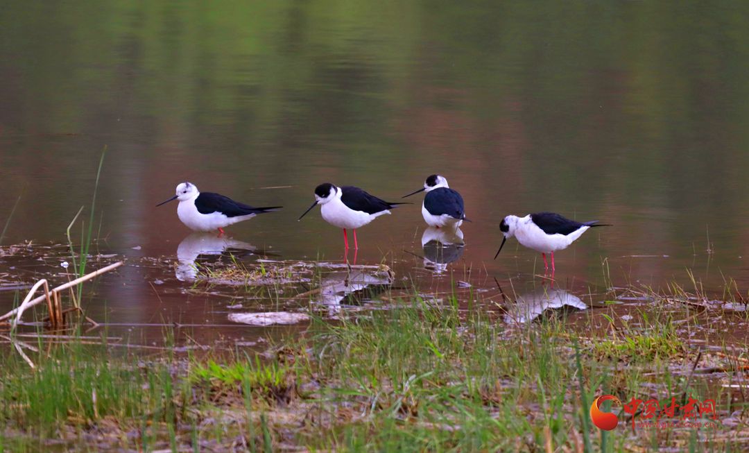 據(jù)了解,這種鳥叫黑翅長腳鷸,是候鳥的一種,春季于4月初至5月初遷來中國北方繁殖地,秋季于9-10月離開北方繁殖地往南遷徙。黑翅長腳鷸是一種涉禽(水鳥中的一類),喜歡成群結(jié)隊,淺水而居,以小昆蟲、小魚、蝌蚪等為食。它還是一種惹人喜愛的水鳥,它的嘴細(xì)長而筆直,體白翅黑,對比分明,身姿綽約、體態(tài)修長,被譽(yù)為“鳥中模特”或者“長腿超模”。