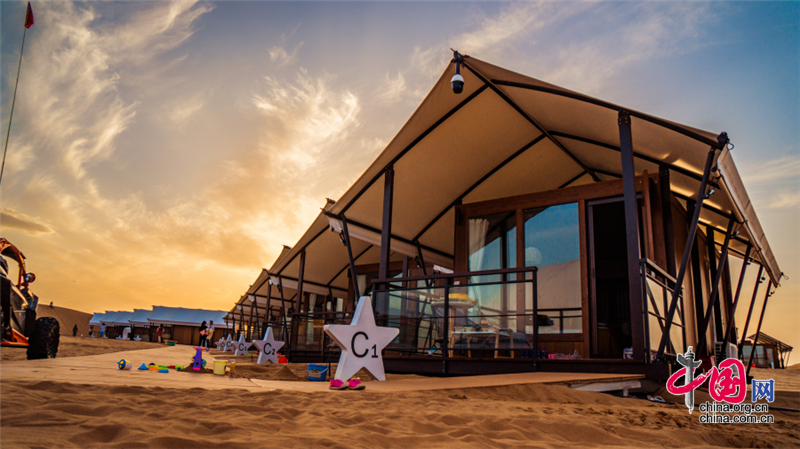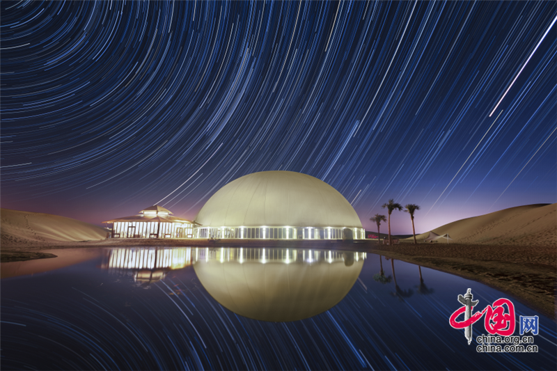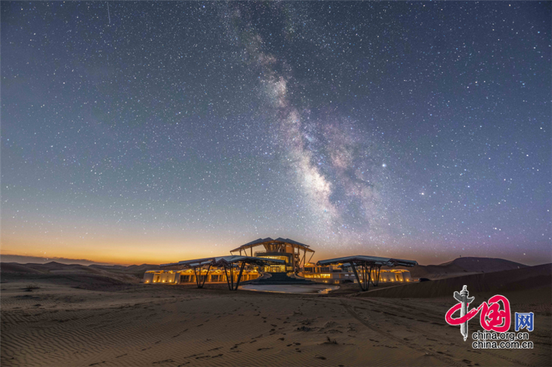 在沙漠區(qū),游客晨觀大漠日出,昏賞沙海夕陽(yáng),夜晚宿在星星酒店,感受躺在床上看星星的奇妙體驗(yàn),在星咖啡手工制作星星原木版畫(huà),在五行沙療室滋養(yǎng)生命的每一個(gè)細(xì)胞,在觀星谷跟著星空講師春看獅子座、夏觀銀河、秋尋仙女座、冬追獵戶座,期待與一場(chǎng)流星雨的不期而遇。