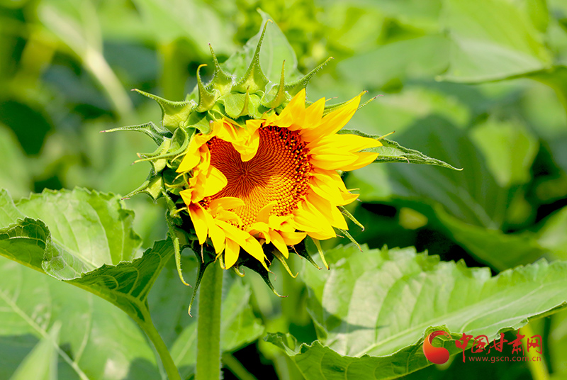 7月20日,位于文縣尚德鎮(zhèn)尹家壩村的矮化向日葵進(jìn)入盛花期,金燦燦的花朵競(jìng)相綻放,匯成金黃色海洋,引來成群的蝴蝶嬉戲、蜜蜂采蜜,生態(tài)宜居的美麗村莊鑲嵌其間,慕名而來的游客愜意賞花拍照、絡(luò)繹不絕。