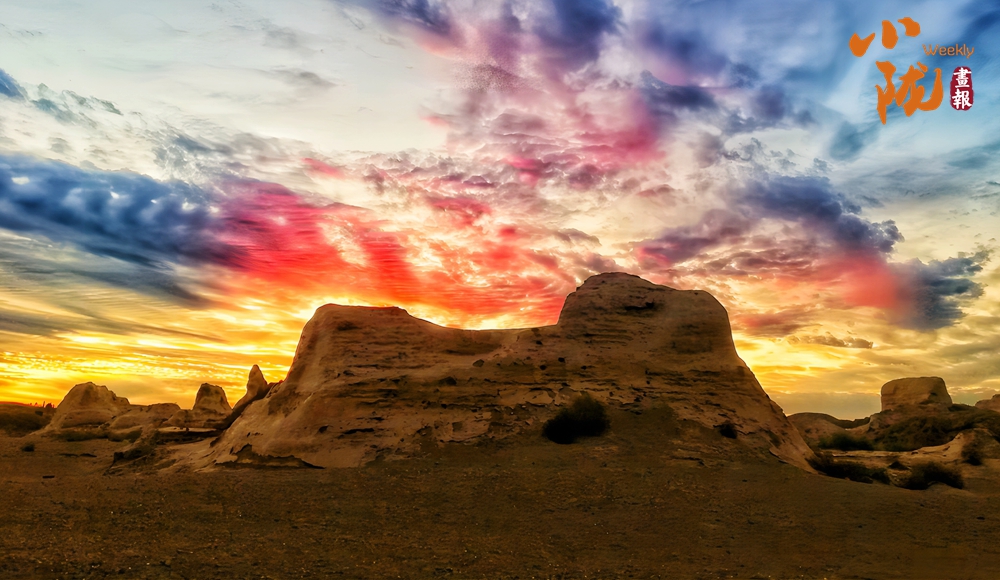 茫茫戈壁,唯有這座古老的烽燧,寒來暑往,飽經(jīng)風(fēng)霜,見證著世間的滄桑、歲月的變遷。