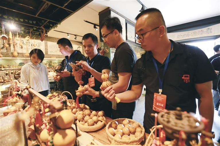 參會(huì)嘉賓觀看刻葫蘆工藝品 張建平 攝