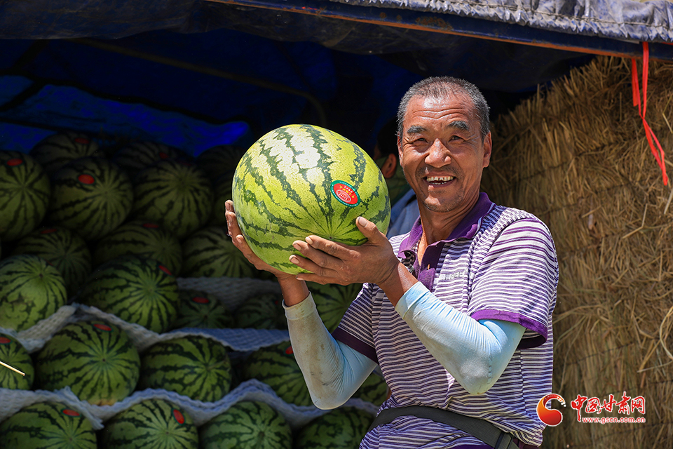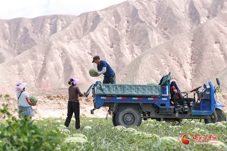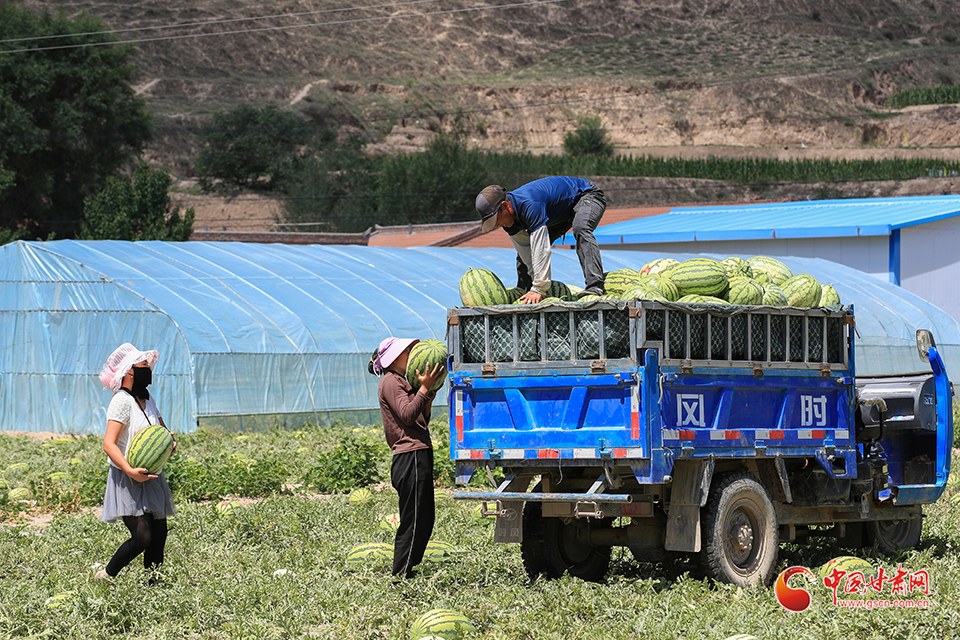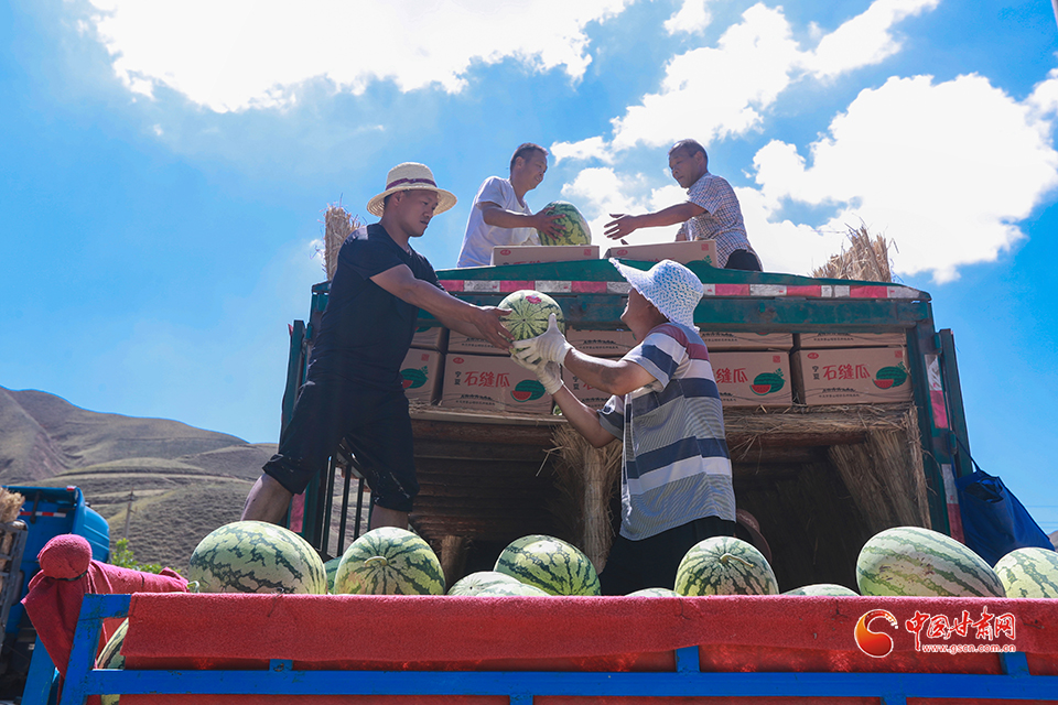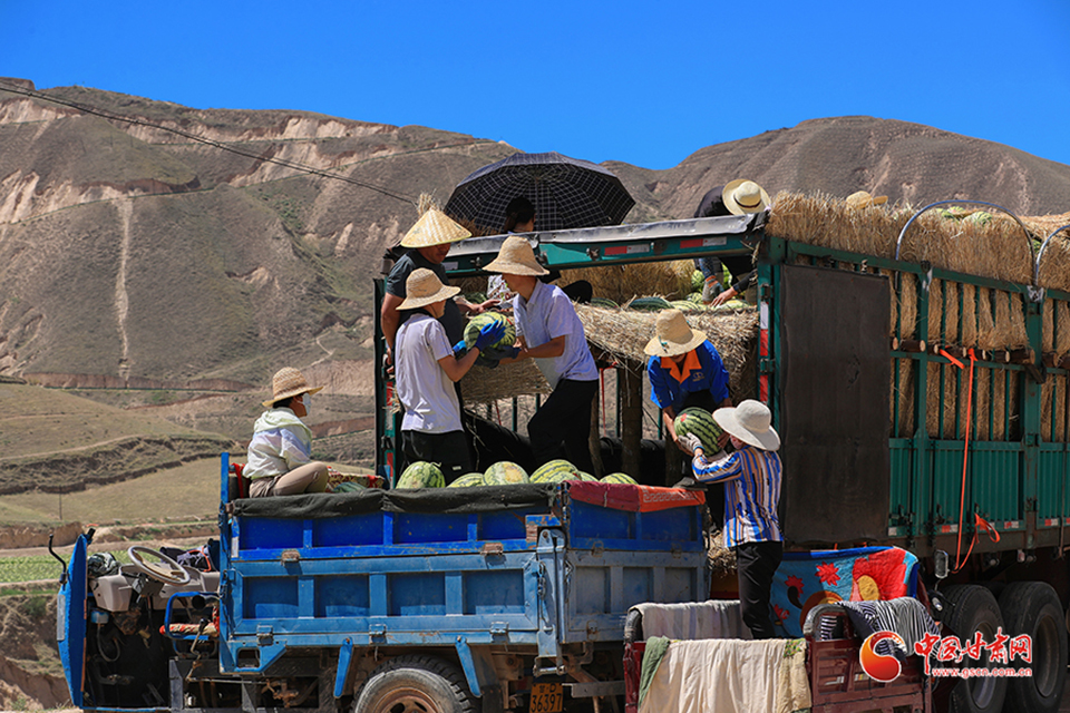 7月31日,甘肅省白銀市會寧縣土高山鄉(xiāng)種植的砂田西瓜喜獲豐收,瓜農(nóng)們忙著采收、搬運(yùn)、裝車外運(yùn),“搶鮮”上市銷售。
