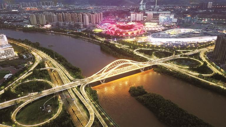 蘭州,不僅是“全國文明城市”“國家園林城市”“中國最具投資吸引力城市”“營商環(huán)境創(chuàng)新城市”“最具文旅投資價值城市”,更成為了國內(nèi)最受歡迎的十大避暑城市之一和游客數(shù)量增長最快的十大“網(wǎng)紅城市”之一。圖為深安大橋和奧體中心、萬達(dá)茂美麗夜景。