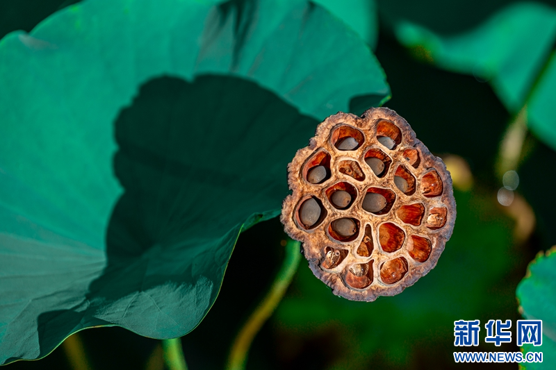 近日,在甘肅省白銀市白銀區(qū)水川黃河濕地公園,滿池荷花嬌艷、荷葉青翠,藍天、碧水、嬌花、翠葉構(gòu)成了一幅秋日美景圖。新華網(wǎng)發(fā)(郭宏 攝)